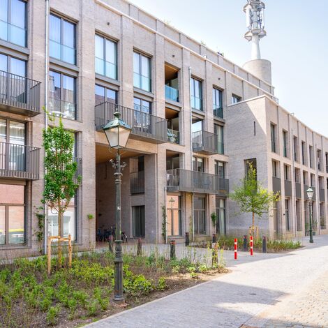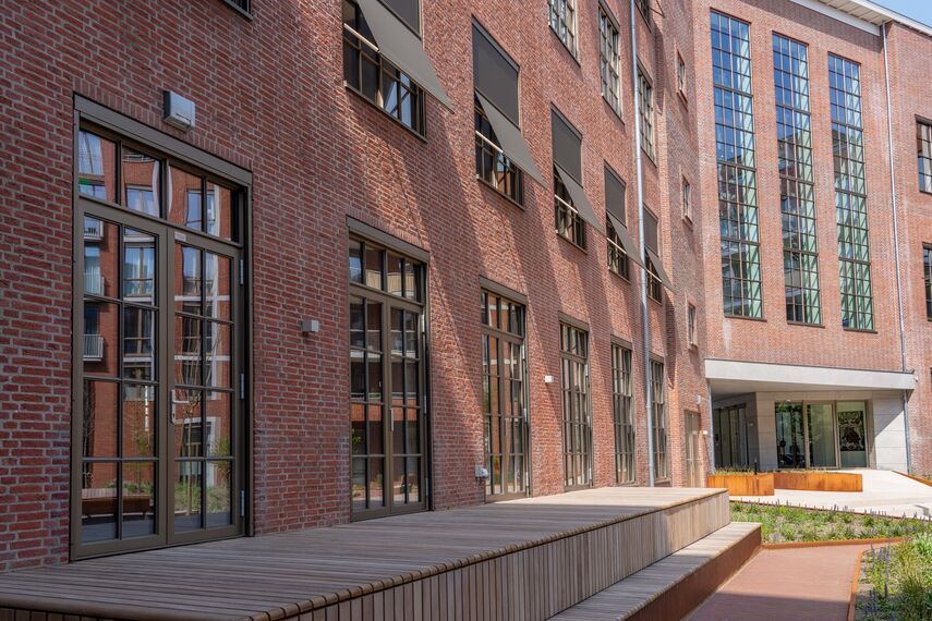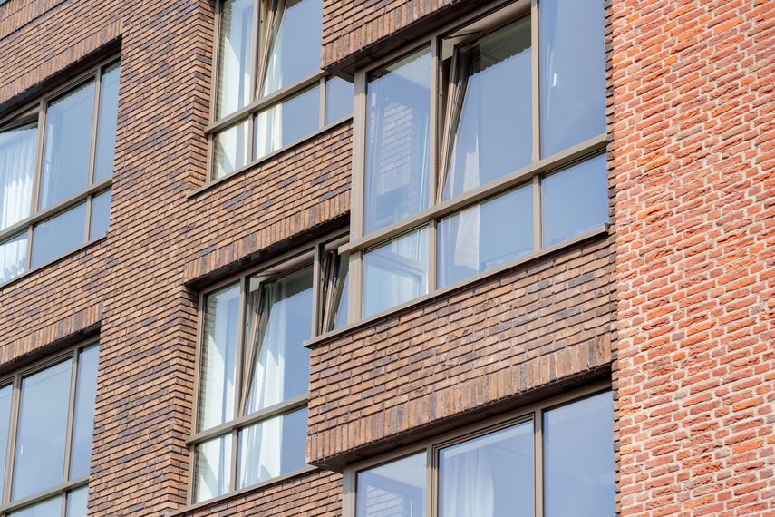 Geert Bosch ontwierp naar eigen zeggen een ‘dik’ gebouw voor sociale huur met een gang en smalle woningen op de koppen. Het Noordblok heeft drie van elkaar verschillende gevels met ieder een eigen volume. Volgens Bosch is het belangrijk om bij een binnenstedelijk ontwerp de context niet uit het oog te verliezen. “In historische binnensteden geven straatgevels niet altijd aan wat erachter gebeurt. Dat zijn historisch gegroeide complexe situaties. Ik ben opgeleid volgens het rationele gedachtengoed ‘form follows function’. Bij een opdracht als deze is dat juist het eerste wat je los moet laten. Je moet een plan ontwerpen dat meteen reflecteert op zijn context en niet op wat er achter die gevel gebeurt. Om een historische referentie te maken naar de originele kozijnen pasten wij het SlimLine-38 raam- en deursysteem van Reynaers Aluminium toe. De ranke, platte profilering pakt de essentie van het oude kozijn zonder een exacte kopie te zijn. In het Midden- en Zuidblok werd gewerkt met de Concept System 77-profiel. Door het kozijn achter de spouw weg te werken en een andere keer juist te laten zien, zie je een mooie variatie terug. Terugverwijzen naar het verleden, zonder te historiseren. Dat is de essentie.”