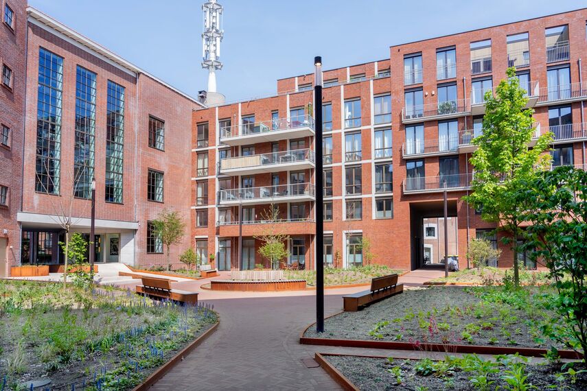 Drie architecten, drie bouwdelen, één missie: Geef de binnenstad een stuk kwalitatieve bouw en leefbaarheid terug. Waar vanaf de jaren veertig de telefoons rinkelden, nip je nu een wijntje in Californische sferen of woon je aangenaam met uitzicht op een groene binnentuin. Sjim van Beijsterveldt (Bedaux de Brouwer Architecten), Bert Voss (Voss Architecture) en Geert Bosch (HILBERINKBOSCH Architecten) werkten ieder aan een eigen onderdeel van het verouderde gebouw. Zo bestaat het grote Zuidblok uit nieuwbouw van 158 middensegment- en vrijesectorhuurwoningen. Medewerkers van L - founders of loyalty vinden hun hoofdkantoor in het Middenblok. Het Noordblok biedt ruimte aan 62 huurappartementen. Bosch ontwierp het Noordblok in opdracht van projectontwikkelaar Boelens de Gruyter en was vanaf het begin betrokken bij het project. Hij blikt terug. “Het Noordbrabants Museum, de kazerne, kantoorpanden en woningen omsluiten het gebied. Daar waar je uitkijkt op de achterzijde van de woningen was het nodig om een stuk kwaliteit toe te voegen. We besloten het Zuidblok rondom een binnentuin te vouwen. De buitenschil moest wel passen binnen het Bossche straatbeeld. Op hoeken, knikpunten en pleintjes speelden wij met de volumes en hoogtes zodat er verschillende aanzichten ontstaan. Deze plek vroeg niet om een nieuw gebouw maar juist om een heel nieuw stuk stad. Dat uitgangspunt hield ik altijd in mijn achterhoofd.”
