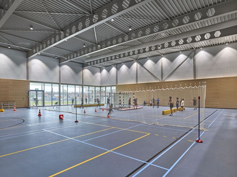 Architectenbureau De Twee Snoeken ontwierp hier een multifunctionele accommodatie waarin transparantie en duurzaamheid centraal staan. Dit project, dat het oude parochiehuis met twee nieuwe volumes combineert, is meer dan een architectonisch hoogstandje; het bevordert ook de gemeenschap en sportparticipatie.