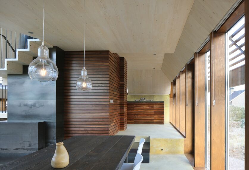 De route in het huis sluit aan bij de wandeling rond het huis. ‘’Het is net alsof je een duinwandeling maakt. Door het op verschillende niveaus situeren van het woonprogramma, ontstaan verschillende zichtlijnen en ruimtes, net als in de duinen’’ aldus Koehler.
